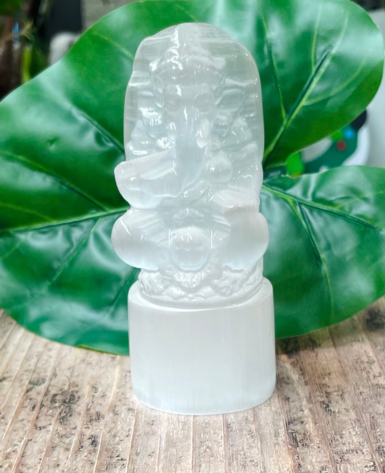 富の神様!ガネーシャのセレナイト彫刻置物です。