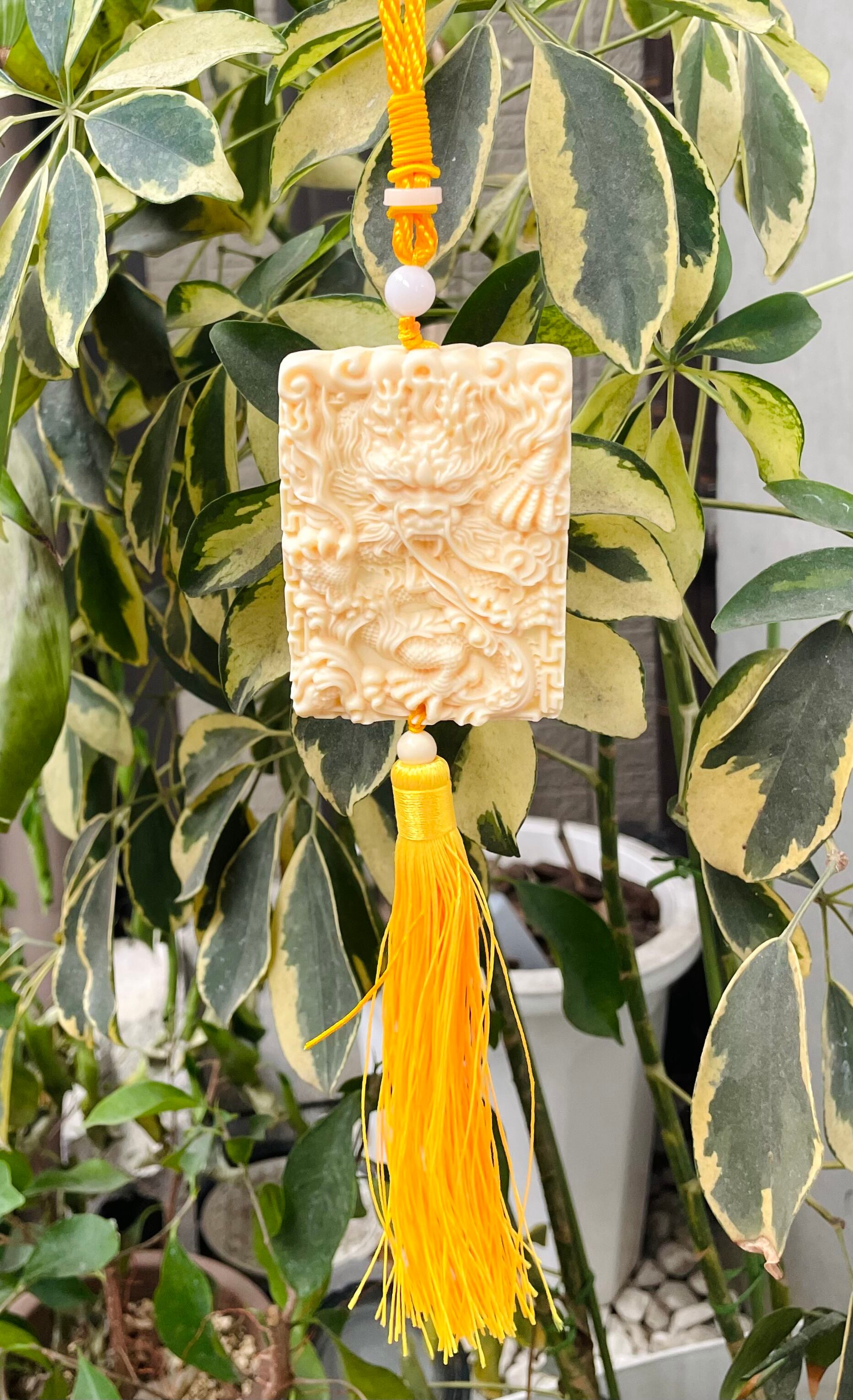 象牙椰子(アイボリーココナッツ)に五爪龍や九龍至尊が彫られた壁掛けです。