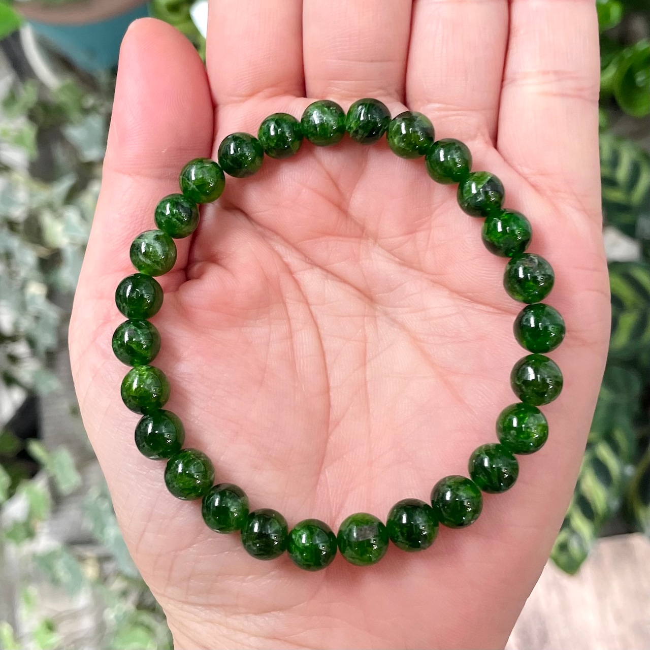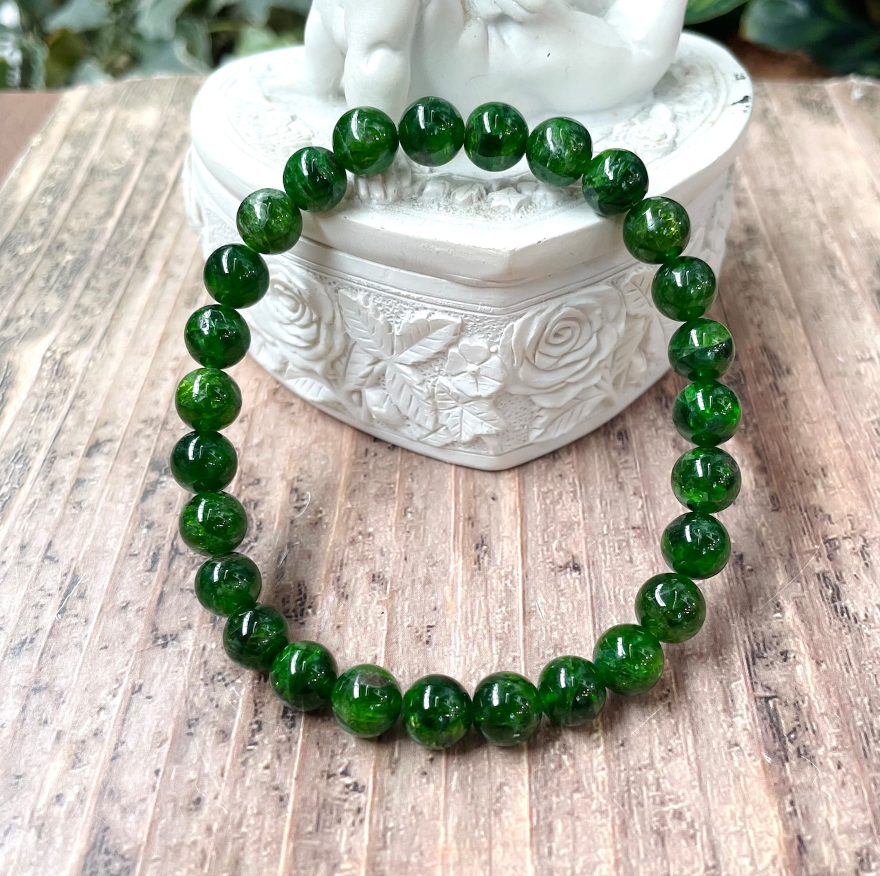 鮮やかな透き通るグリーンが大変美しいクロムダイオプサイトの最高級ブレスレットです。