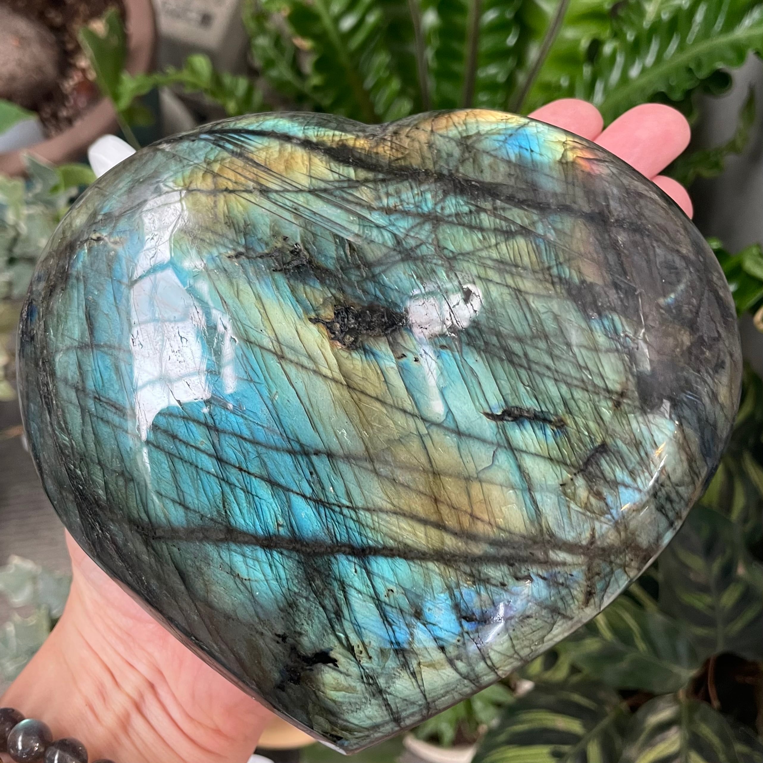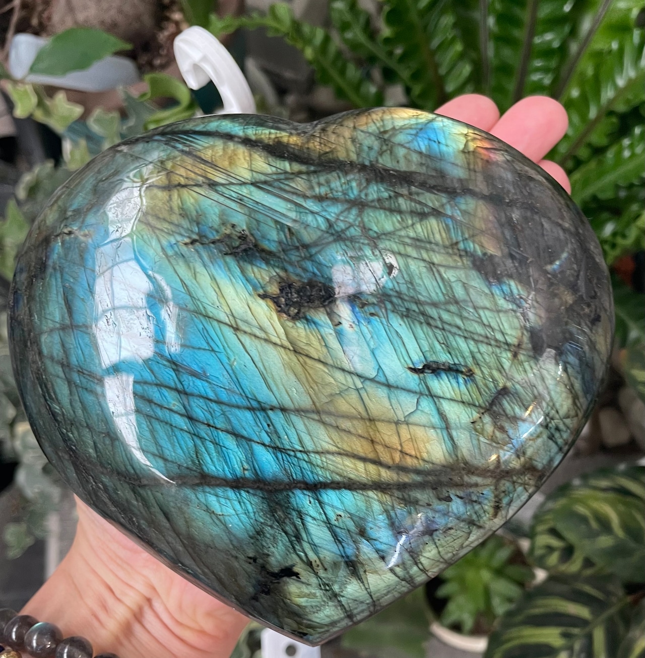 新着★月と太陽が宿る石☆超高パワー!ラブラドライトハート置石