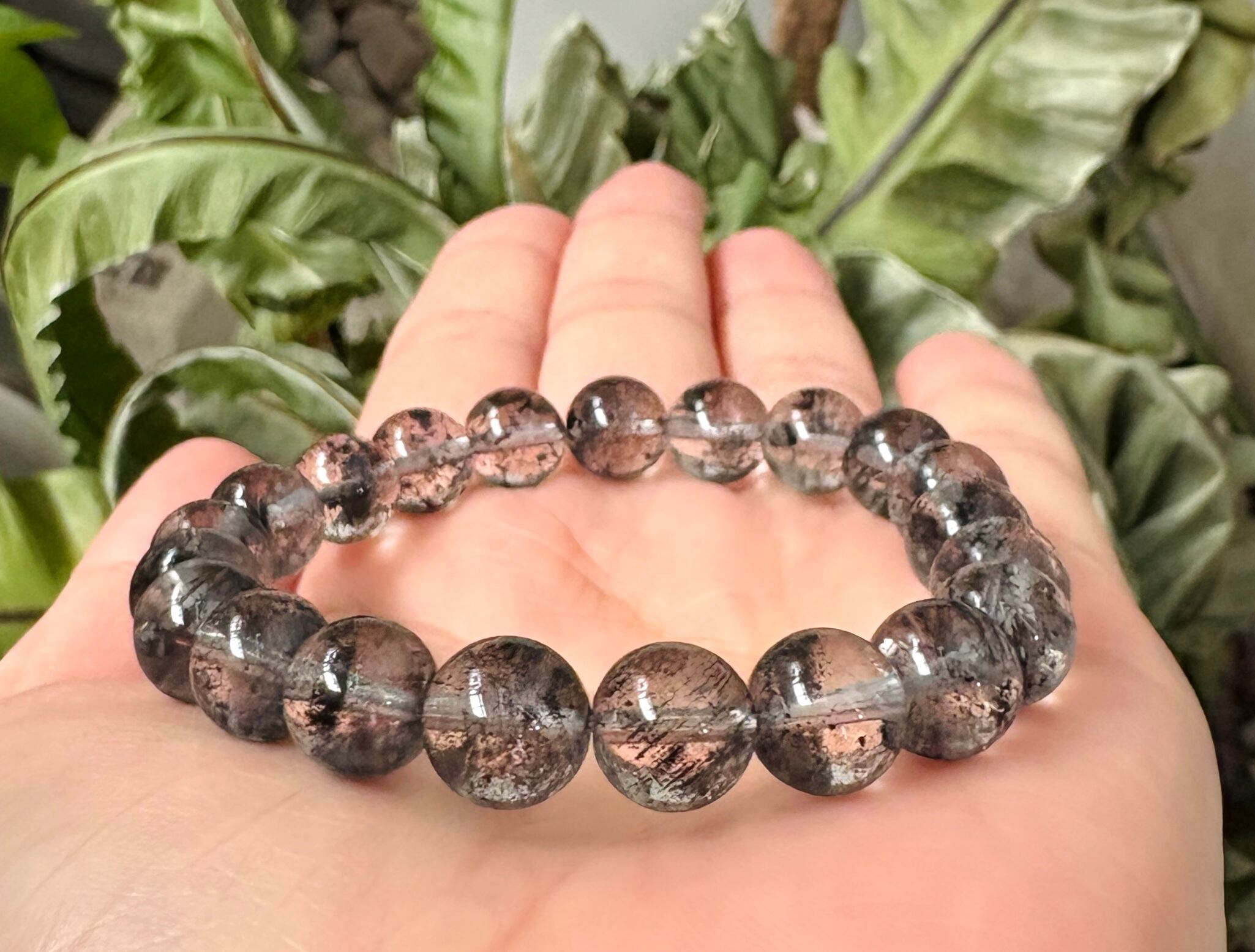 透明感がありインクルージョン(内包物)がはっきりと見える綺麗な高パワー!ブルーガーデンクォーツのブレスレットです。