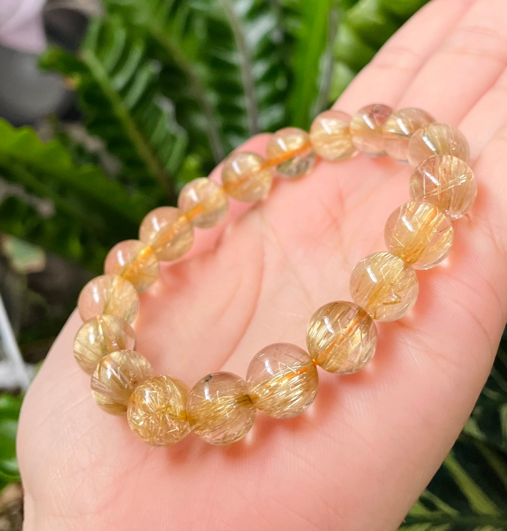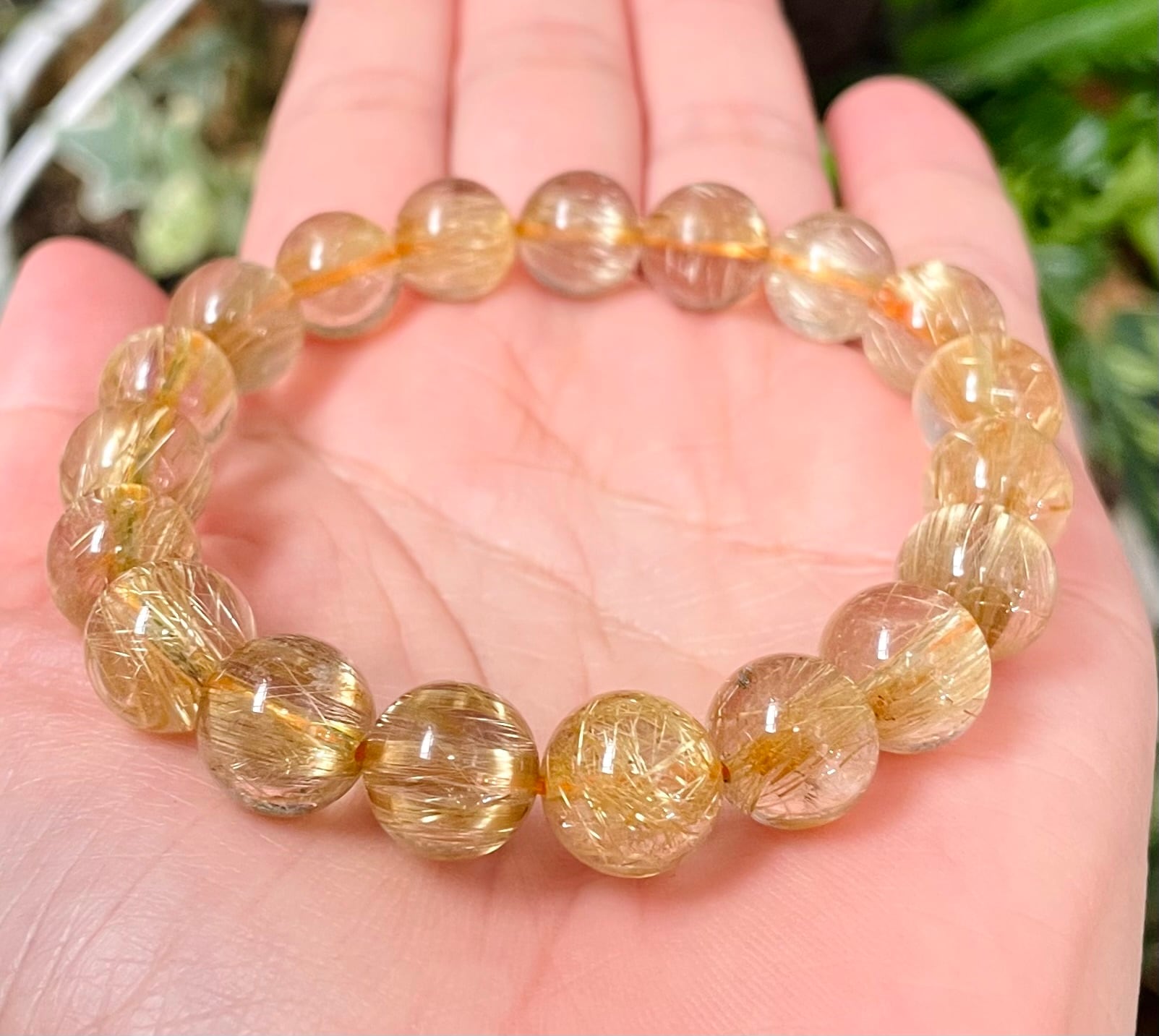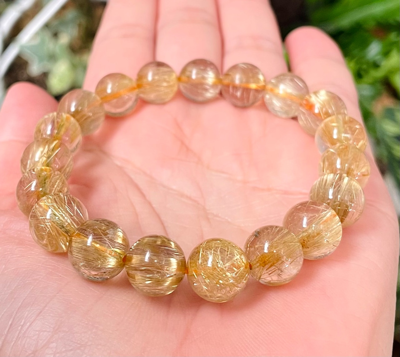 美しい極太の黄金針がぎっしりと内包された高パワー!極太タイチンルチルブレスレットです。