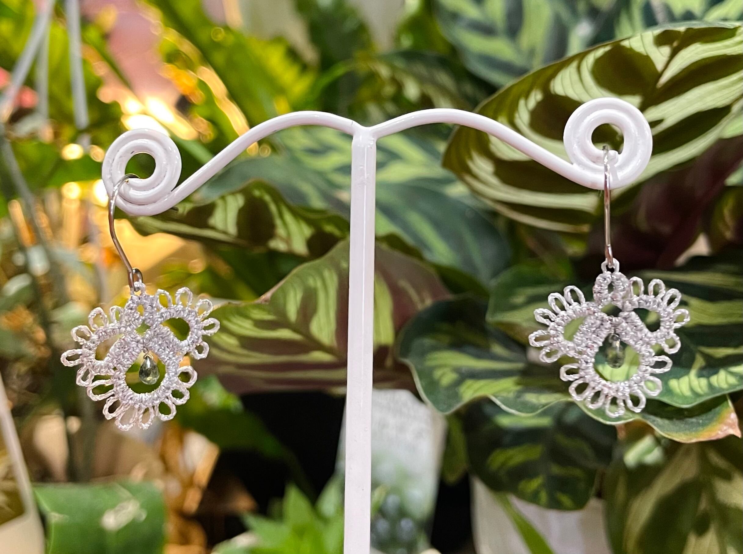 ひとつひとつ手編みで仕上げたレースの繊細さが美しいマルチカラーサファイアのおしゃれなフックピアスです!