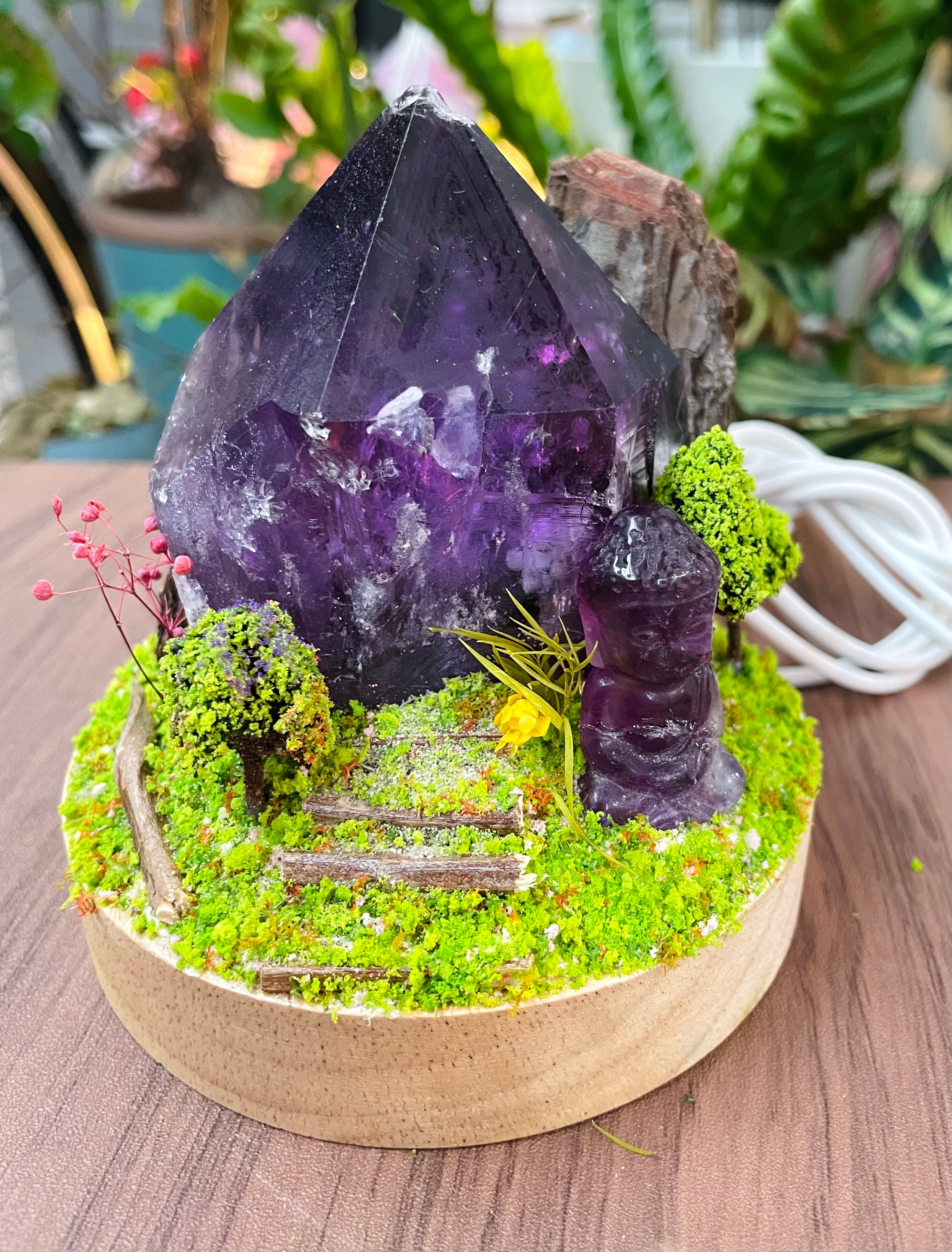 アメジストを贅沢に使用している「ブッタのいる風景」のテーブルランプです。