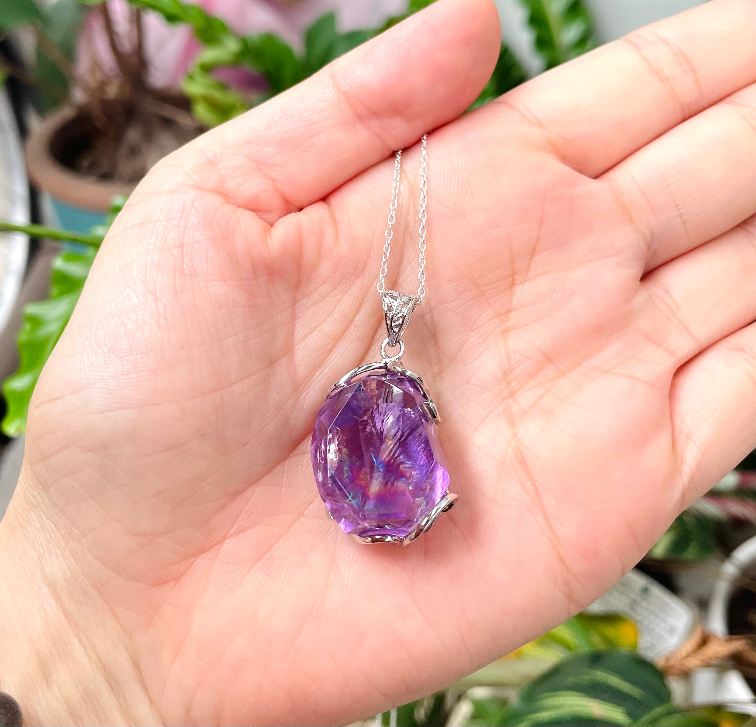 虹がキラキラ輝く高パワー!アメジス原石のペンダントトップです。(チェーン別売)