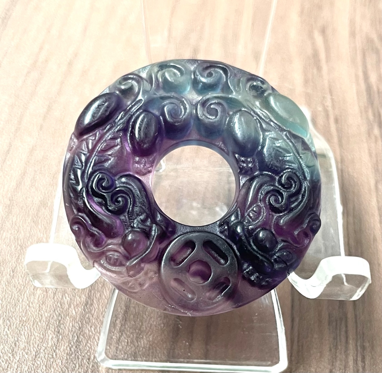 フローライトに貔貅(ひきゅう)が彫られたプレートです。(台座は付属しません)