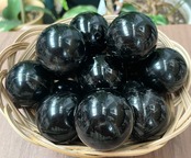 吸い込まれそうな漆黒色の良質なモリオンの丸玉です。