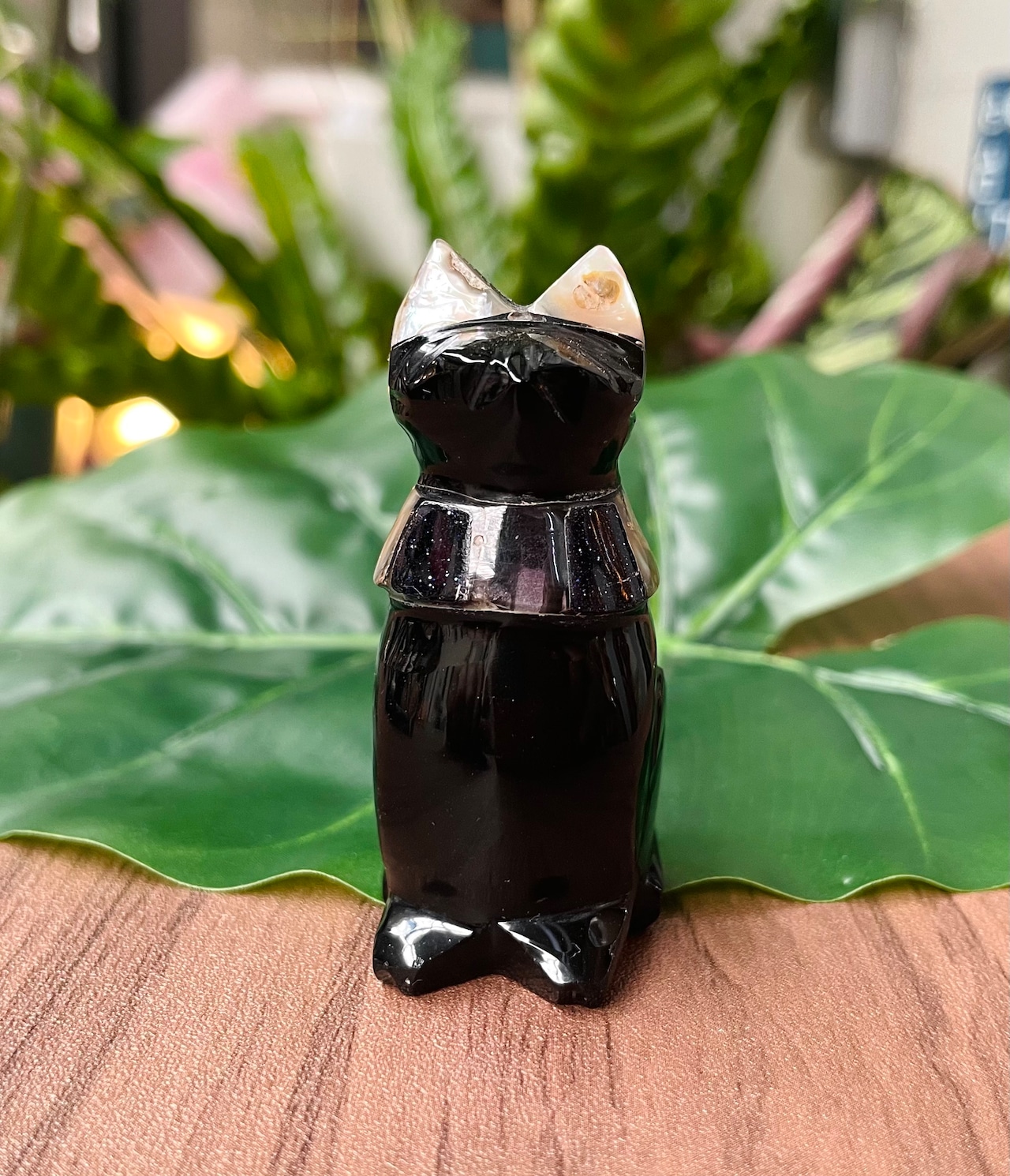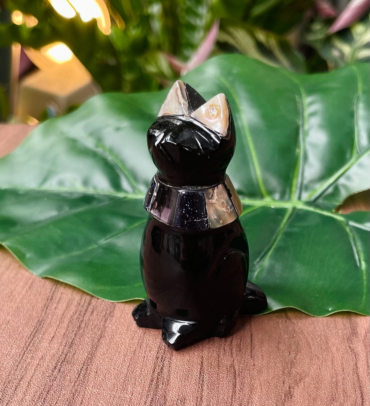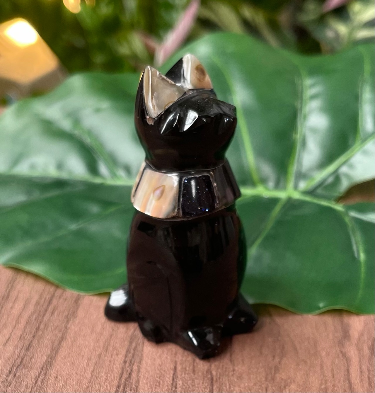 強力な魔除けのオブシディアンのかわいい猫の置物の大サイズです。