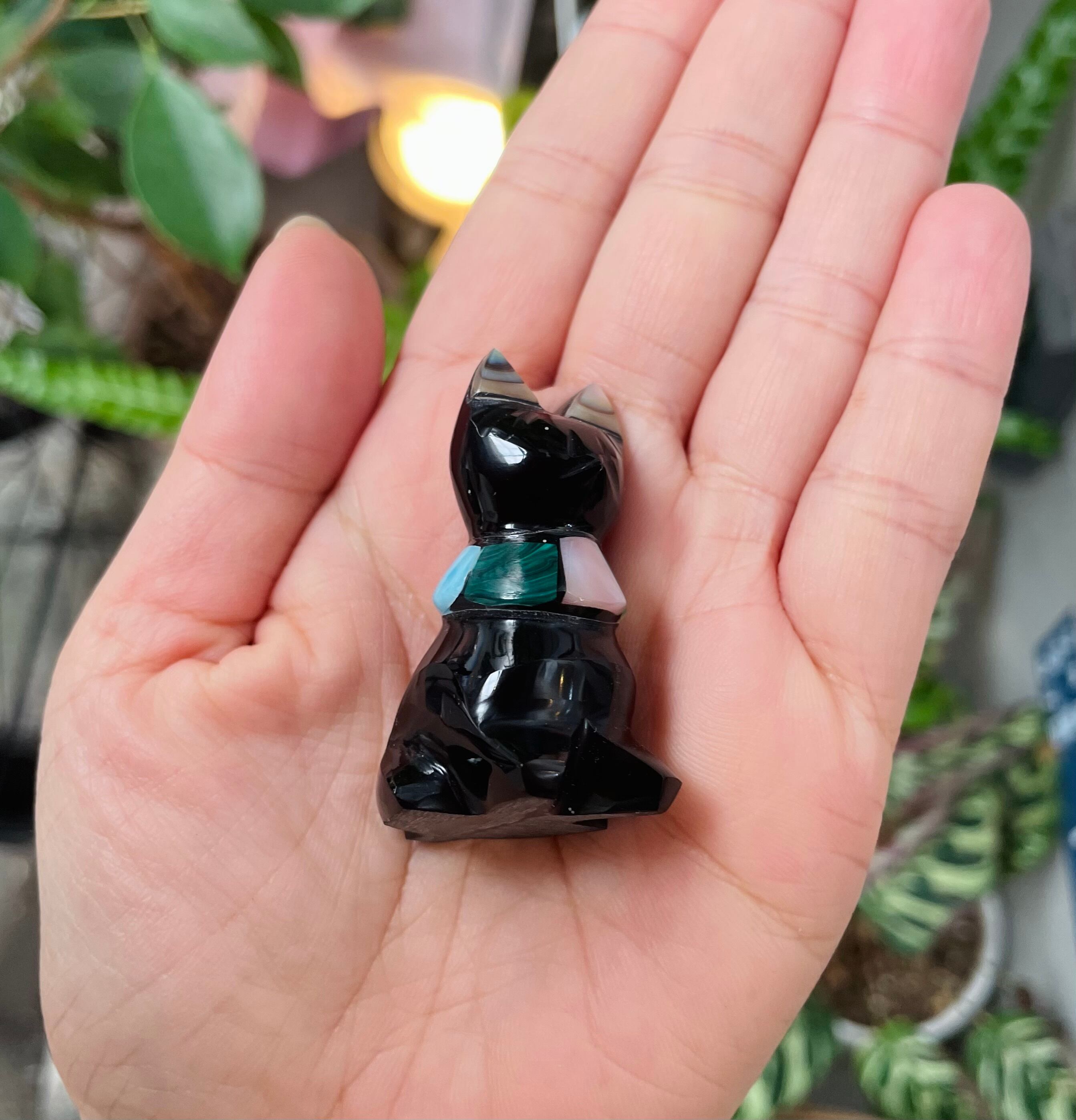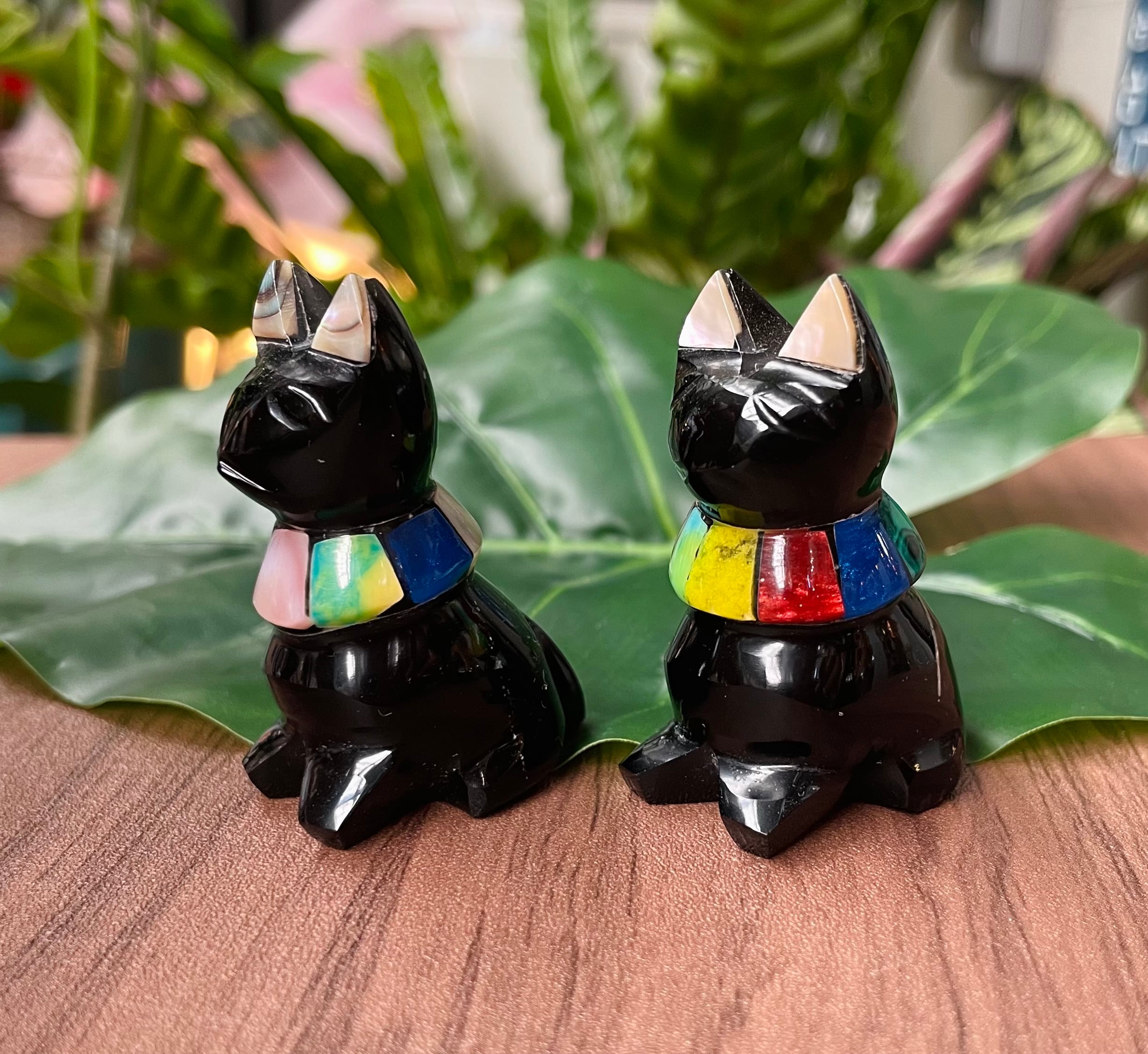 強力な魔除けのオブシディアンのかわいい猫の置物の小サイズです。