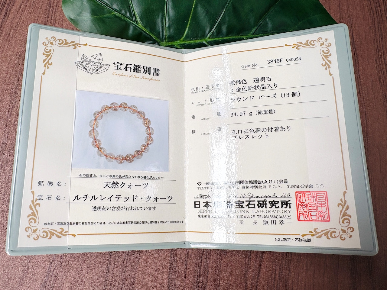 新着★金運を代表する石★極太タイチンルチルクォーツブレスレット★11mm玉(宝石鑑別書付き)