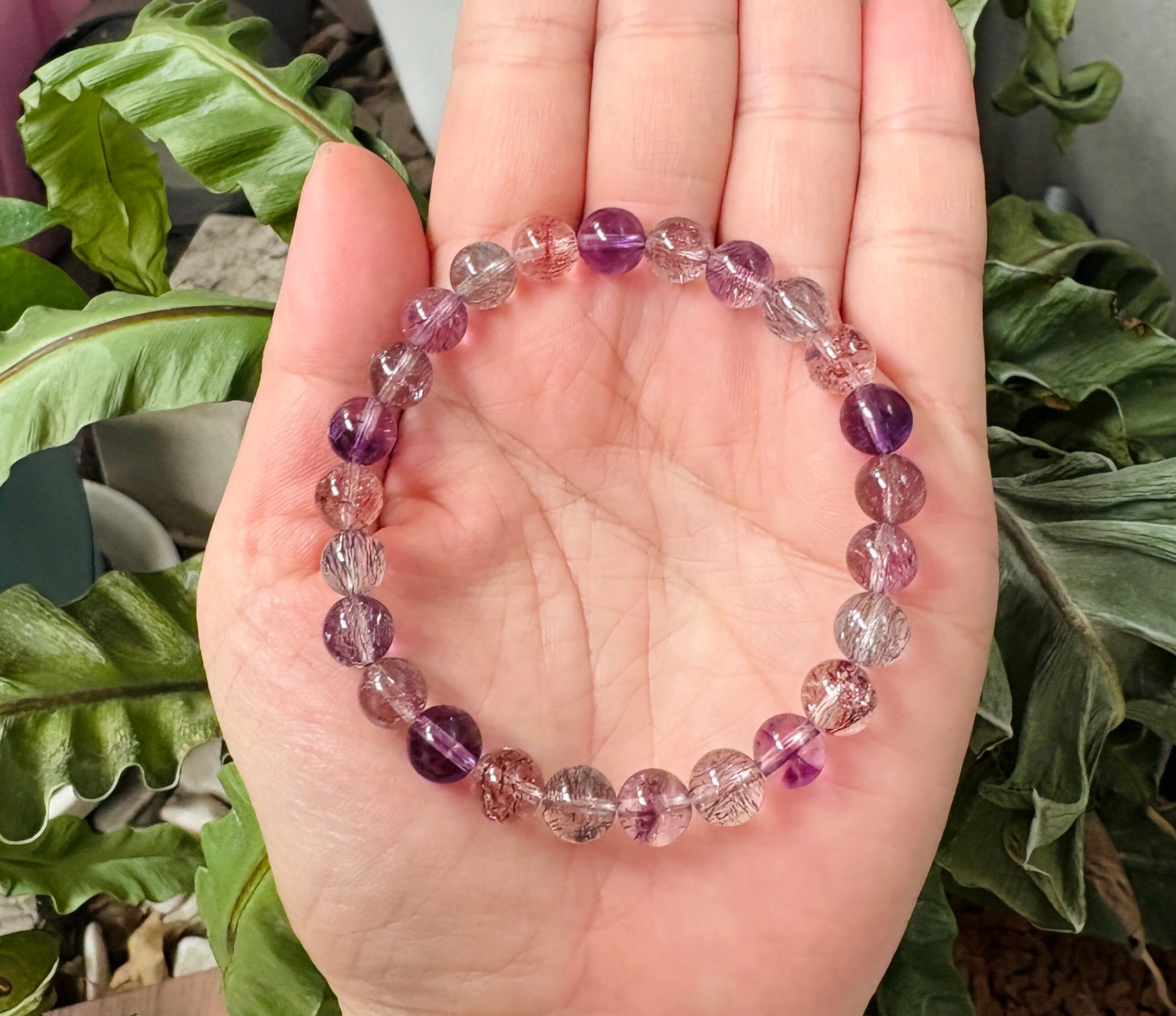 開運や魔除け、自己啓発といったパワーストーン的効能は、全ての石の中でもトップクラスの強力さを持つとされるスーパーセブンのブレスレットです。